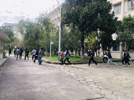 当日上午,尖锐的火警警报声骤然划破校园的宁静,消防应急疏散演练正式拉开帷幕。学院立即启动应急响应预案,全体师生迅速进入高度戒备状态。演练总指挥、学生工作处主任徐晓明统筹指挥,各楼层安全员、班主任沉着冷静地引导师生疏散。学生们在老师的指挥下,捂住口鼻,弯腰低姿,严格按照应急预案规定的疏散路线,快速而有序地向各个安全出口撤离。整个过程紧张而不慌乱,密集而不拥挤。短短数分钟内,全体师生均已安全转移至指定的紧急集合点——塑胶篮球场,并完成了人员清点工作,演练取得了预期效果。