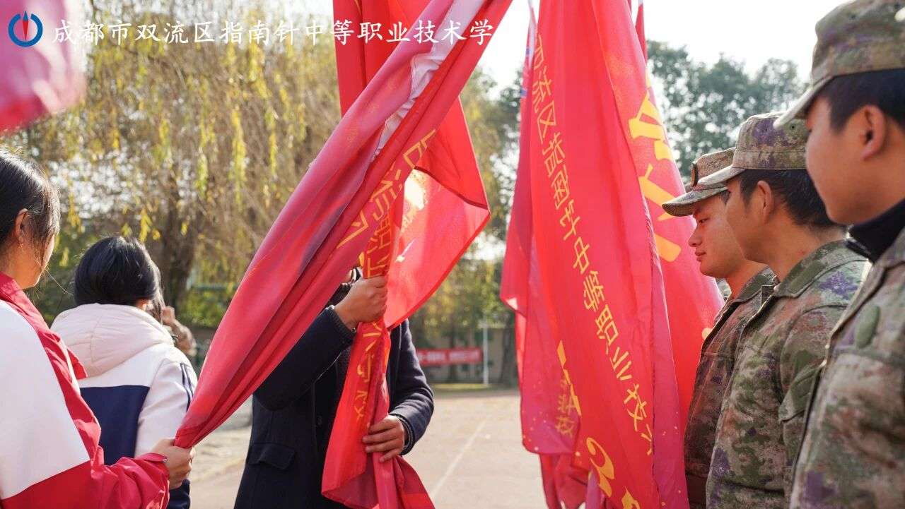 班旗猎猎,使命在肩。仪式最后,德育副校长代表学校向各班级教官授予班旗,这面象征着责任与团结的旗帜,将引领学子们在训练中奋勇争先、勇创佳绩。