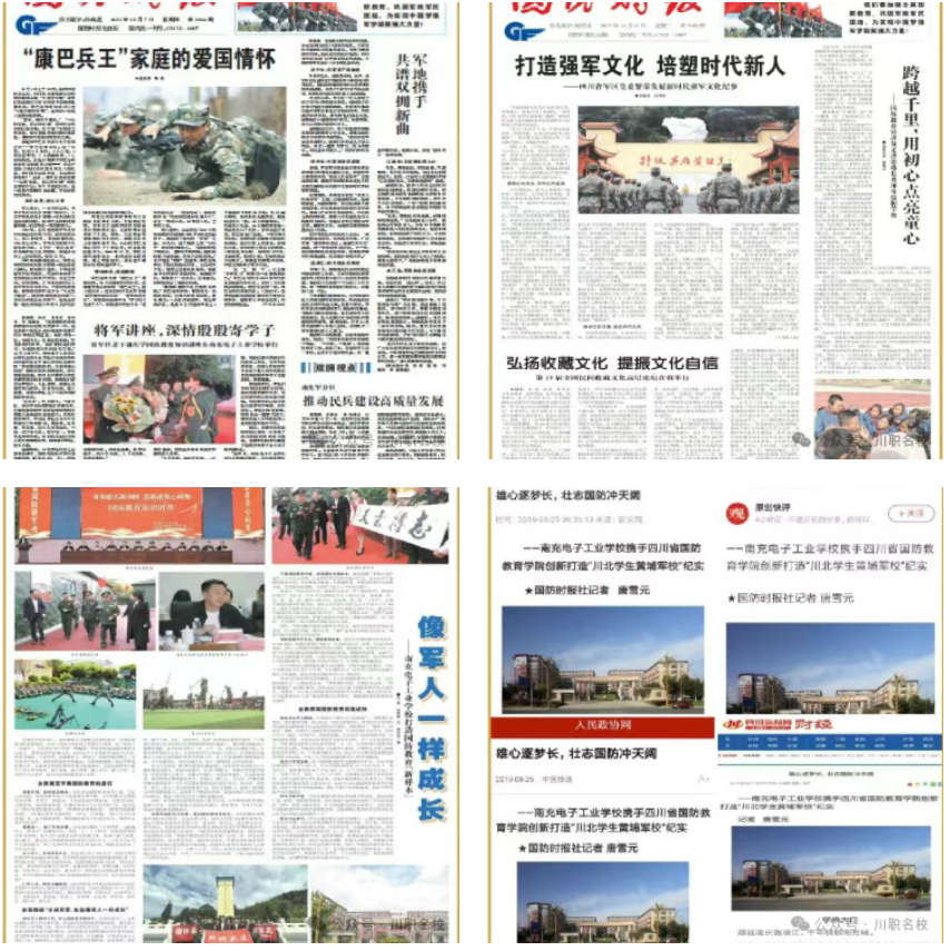 学校被国防日报、新闻周刊、人民政协网等多家媒体争先报道,被<<中国报告文学>>誉为"川北学生黄埔军校",学校先后被上级主管部门授予"大成国防教育科普基地(省级)""南充市高技能人才培养基地""双拥校区"等多个荣誉称号。