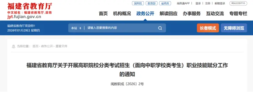 考生通过“福建省高职院校分类考试招生(面向中职学校类考生)职业技能赋分申报系统”进行职业技能证书赋分在线申报,申报系统操作办法另行通知。考生须在规定时间内在线申报,逾期不予受理。