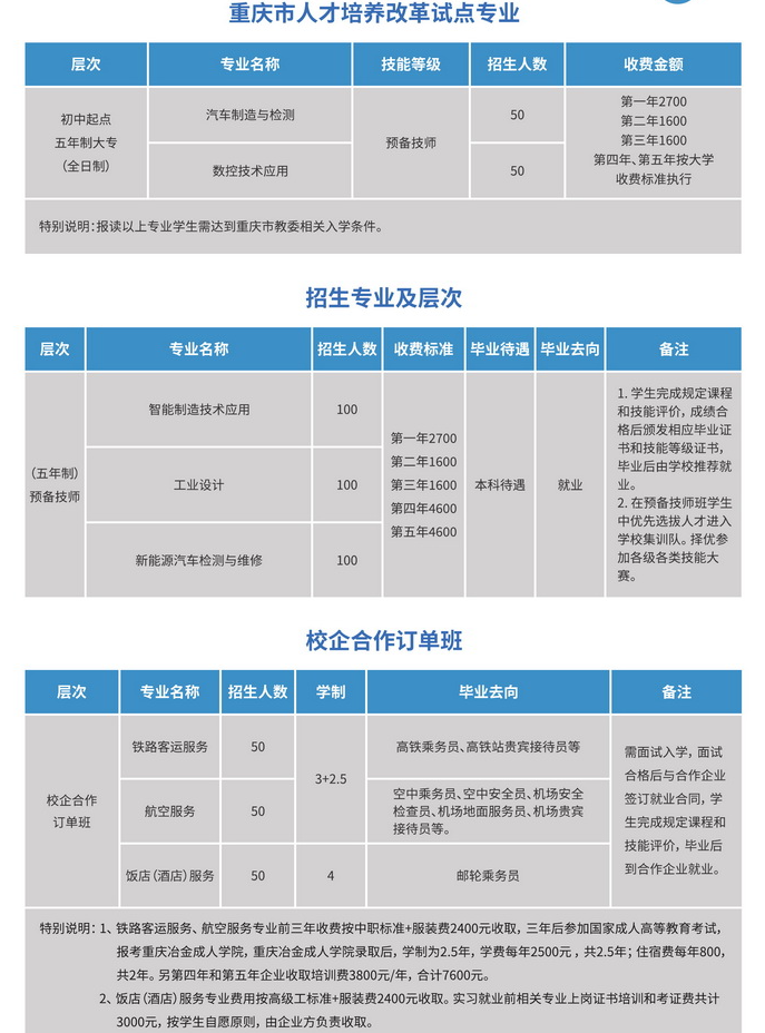 学校现隶属于重庆市经济和信息化委员会管理,由市财政全额拨款。学校地处巴南区龙洲湾巴滨路,占地近130亩,建筑面积10万余平方米,现有学历教育学生5700余人,在编教职工近300人。学校现开设有数控技术应用、电子技术应用、汽车制造与检修、模具制造技术、机电技术应用、城市轨道交通车辆运用与维修等14个专业,拥有各类实训设施设备近3000台套、设备总值5000余万元。