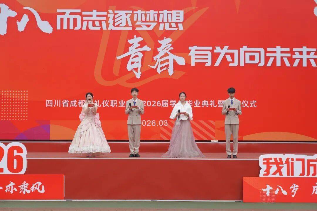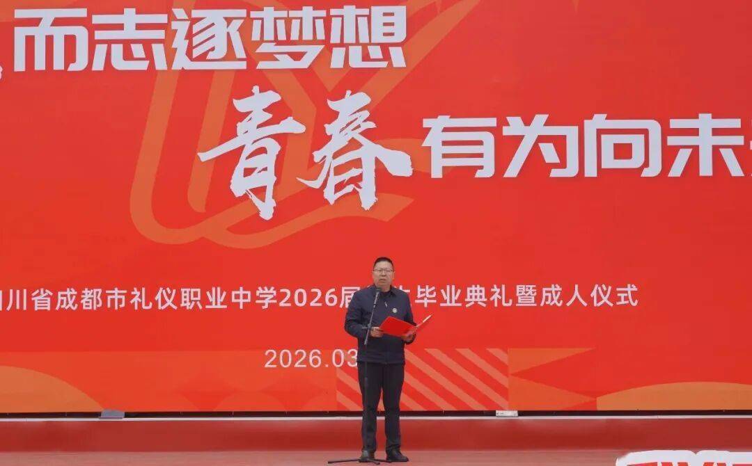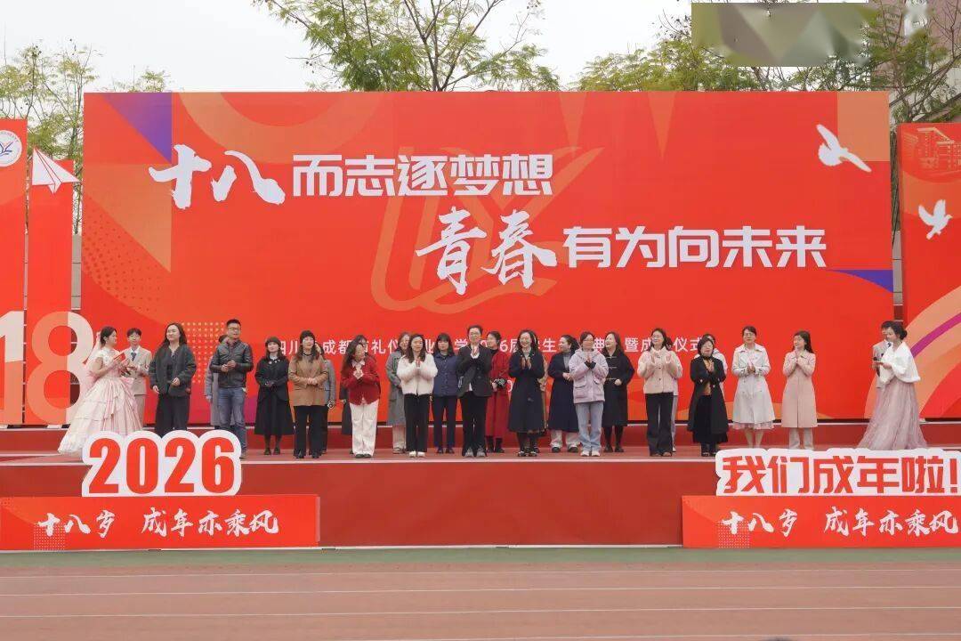 十八而志、青春有为 ,3月13日,四川省成都市礼仪职业中学隆重举行2026届高三学生毕业典礼暨成人礼仪式。本次活动以“十八而志逐梦想,青春有为向未来”为主题,通过庄重温馨的仪式环节,共同见证全体高三学子从少年走向成年、从青涩迈向成熟的珍贵时刻。