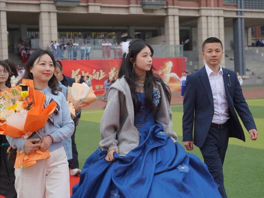 仪式伊始,伴随着悠扬的乐曲,高三全体同学与家长携手,在班主任的引导下缓步走过红毯,共同跨越象征成长与蜕变的“成人之门”。学校领导、教师代表与在校同学们分列红毯两侧,以热烈的掌声与真挚的笑容,为即将成年的学子们送上最美好的祝福。