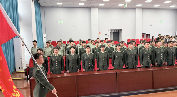 仪式在庄严的国歌声中拉开帷幕。奏唱国歌环节,全体队员肃立注目,尽显准军事化队伍的纪律与风貌。回顾2023级学生辅导员履职历程:他们以“154”准军事化自治管理模式为遵循,在日常行为规范、校园秩序维护、学风建设、文明养成、活动保障等岗位上坚守担当,用严格自律、无私奉献诠释学生骨干的责任与使命,为学校校风学风建设与学生自主管理作出积极贡献。