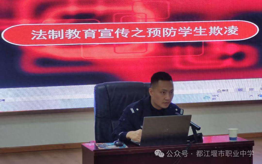 为增强学生法治观念,预防学生欺凌事件,营造安全、和谐、友爱的校园环境,都江堰市职业中学(市技工学校)特邀都江堰市公安局聚源镇派出所驻校民警刘中敏走进学校,开展“预防学生欺凌”主题讲座,为同学们上了一堂生动且深刻的法治课。