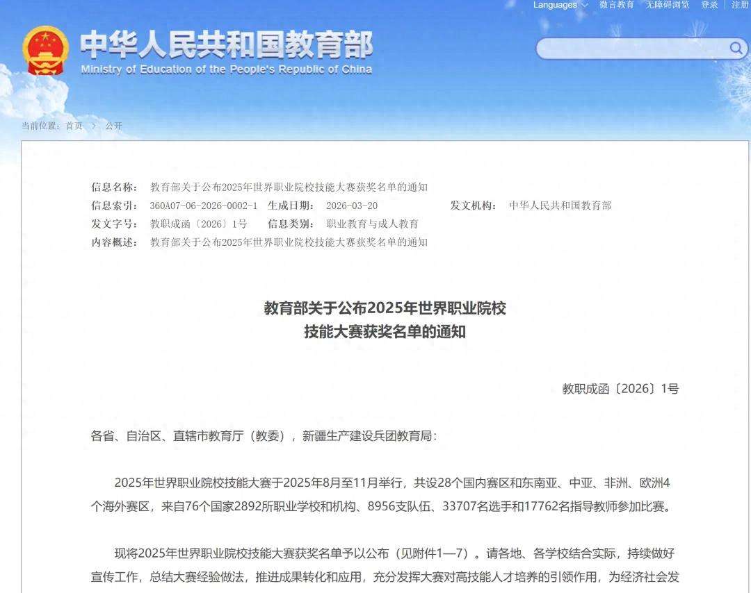 一句话总结:能在世赛拿奖的学校,一定是办学实力顶尖的公办强校!