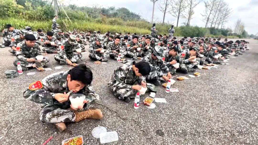 经过数小时的长途跋涉,队伍抵达预定休整区域。在教官的统一指挥下,各班进行简易就餐。