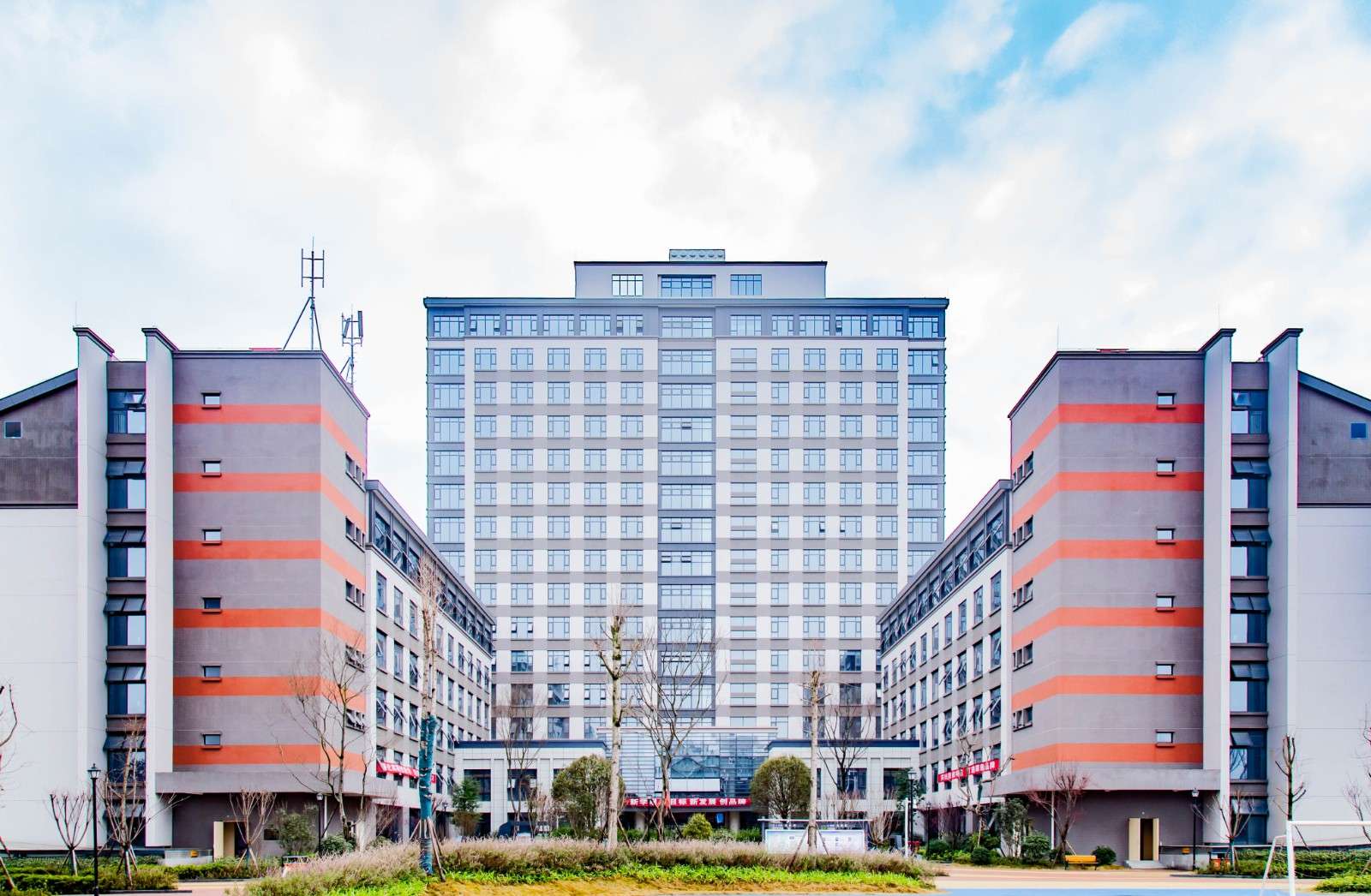 校区坐落于四川省崇州市羊马街道贺新路200号,校园占地12万平方米,建筑面积达6.8万平方米,整体布局现代化,兼具教学实训与生活服务功能。核心建筑包括综合教学楼、专业实训楼、学生宿舍及膳香楼食堂,其中综合教学楼以灰白基底搭配红灰条纹设计,整合理论教室、多功能报告厅等多元空间,与周边绿植景观营造出舒适的育人氛围;学生宿舍采用上床下桌布局,配备独立卫生间、淋浴装置及公用洗衣机,保障学生日常居住需求;膳香楼以浅木色格栅吊顶搭配浅蓝色立柱,提供丰富餐食选择,为校园生活提供坚实后勤支撑。此外,校区还设有标准运动场、校园超市等配套设施,满足学生运动与日常消费需求,整体生活便利度高。